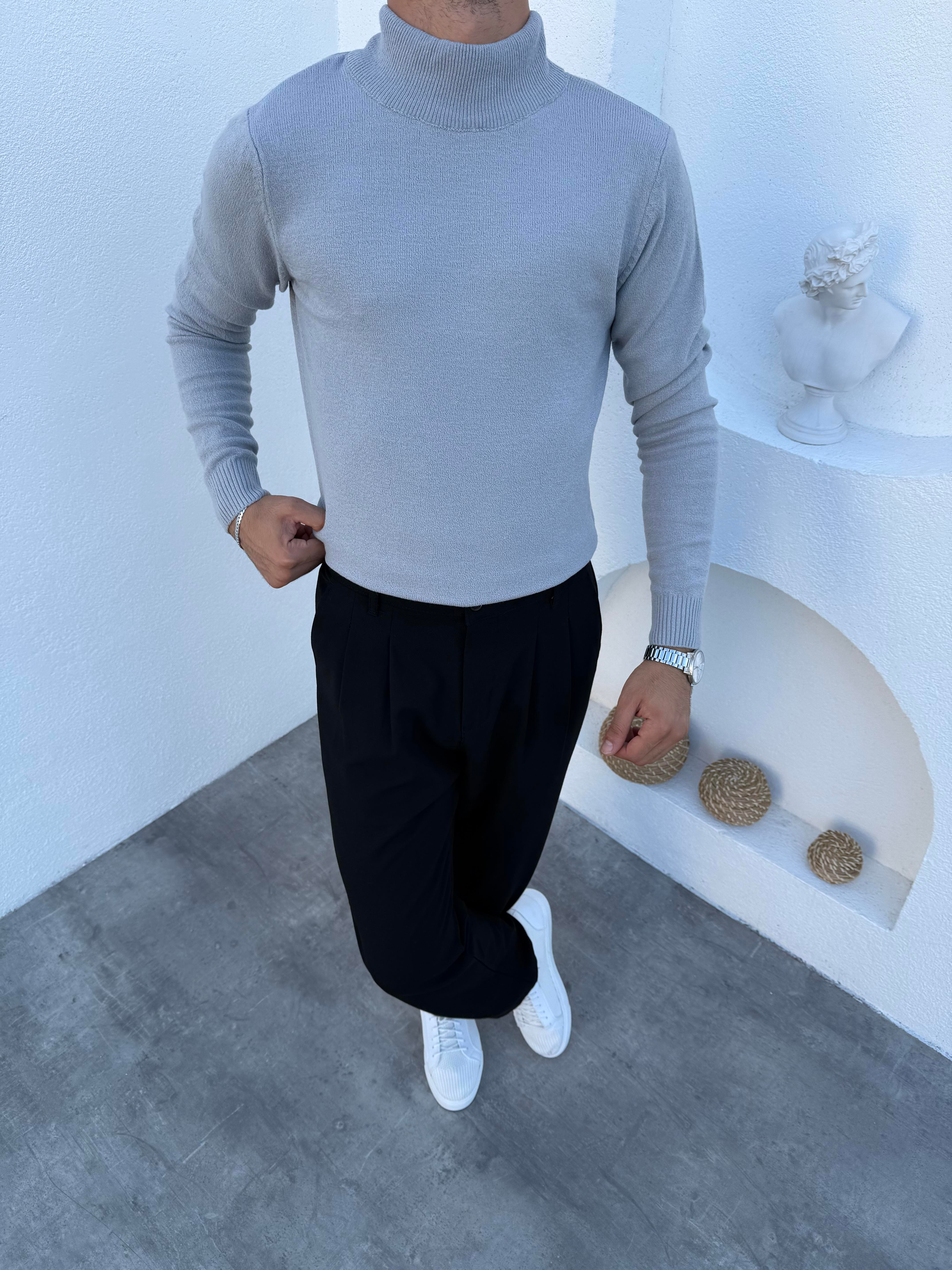 Yarım Balıkçı Likralı Triko Kazak Gri