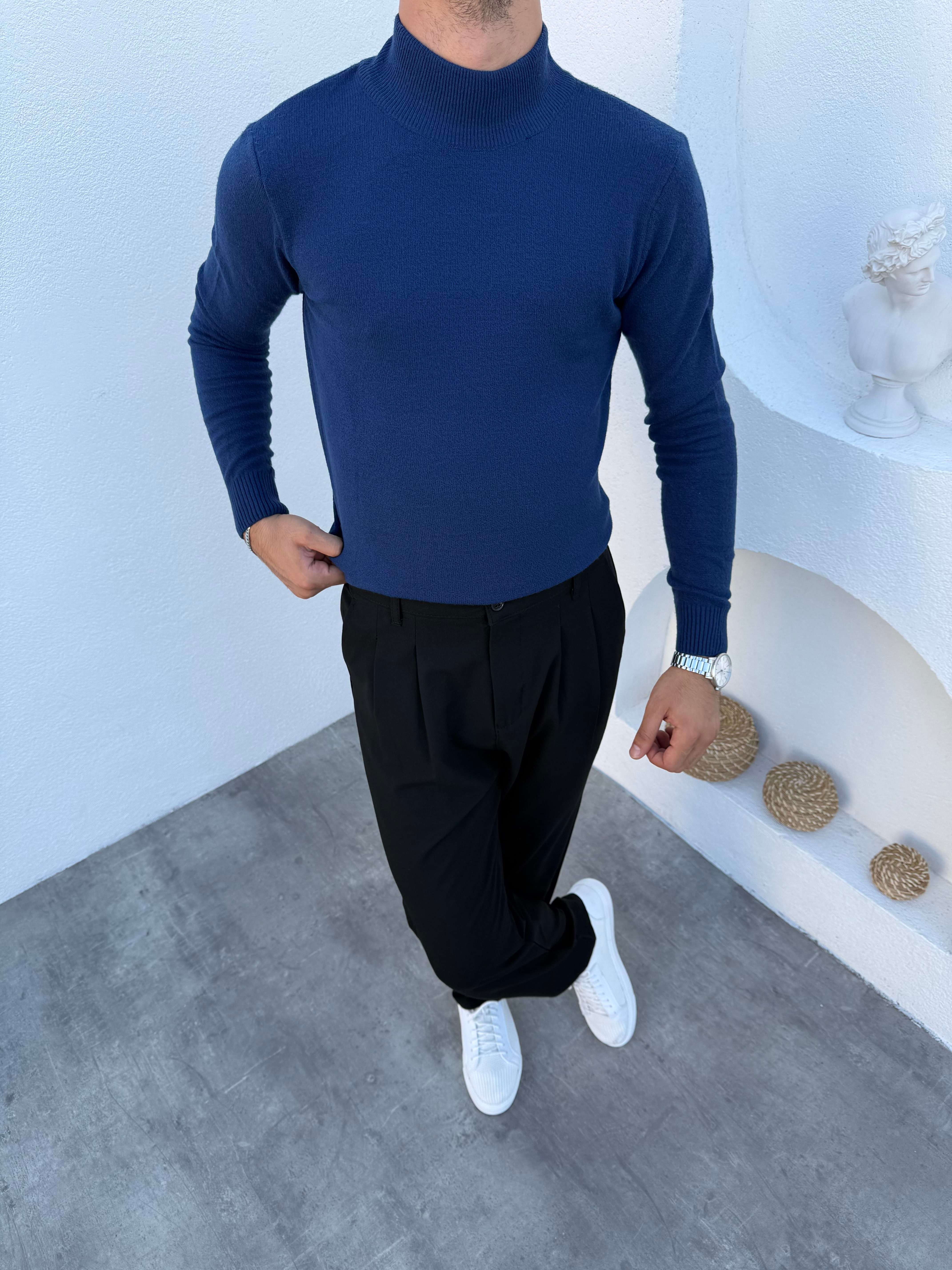 Yarım Balıkçı Likralı Triko Kazak Lacivert