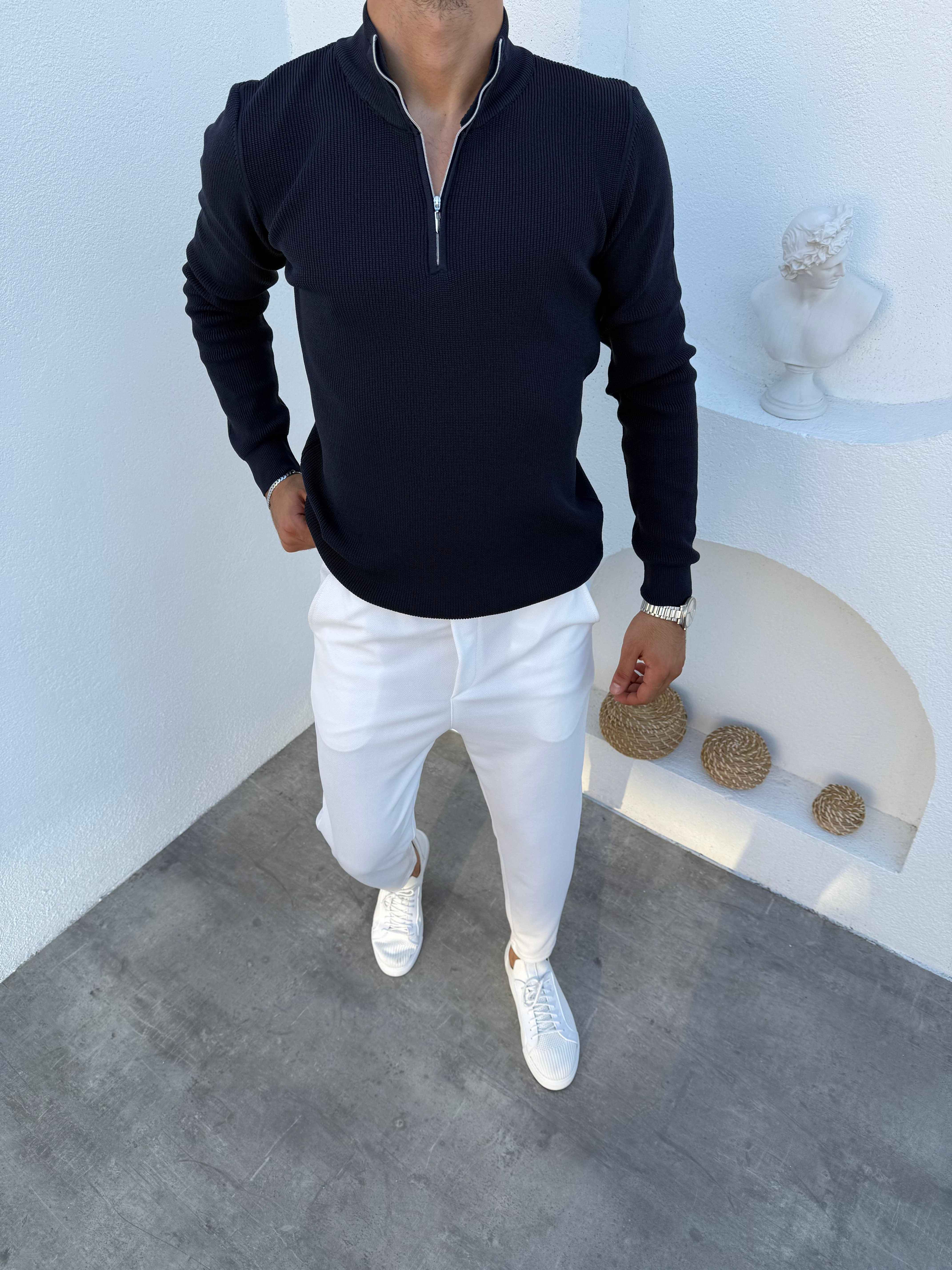 Yarım Fermuar Triko Kazak Lacivert (FM84622)