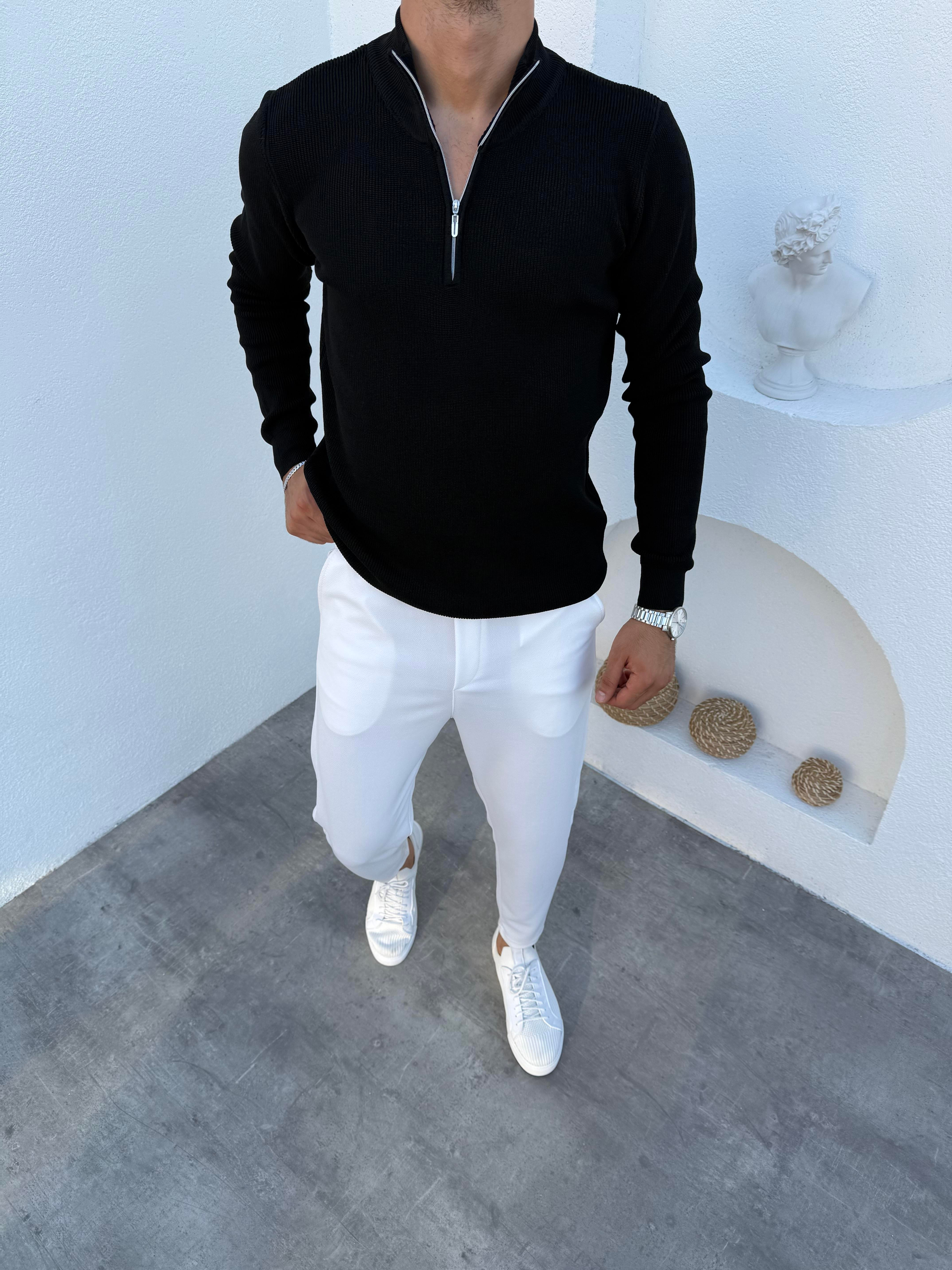 Yarım Fermuar Triko Kazak Siyah (FM84622)