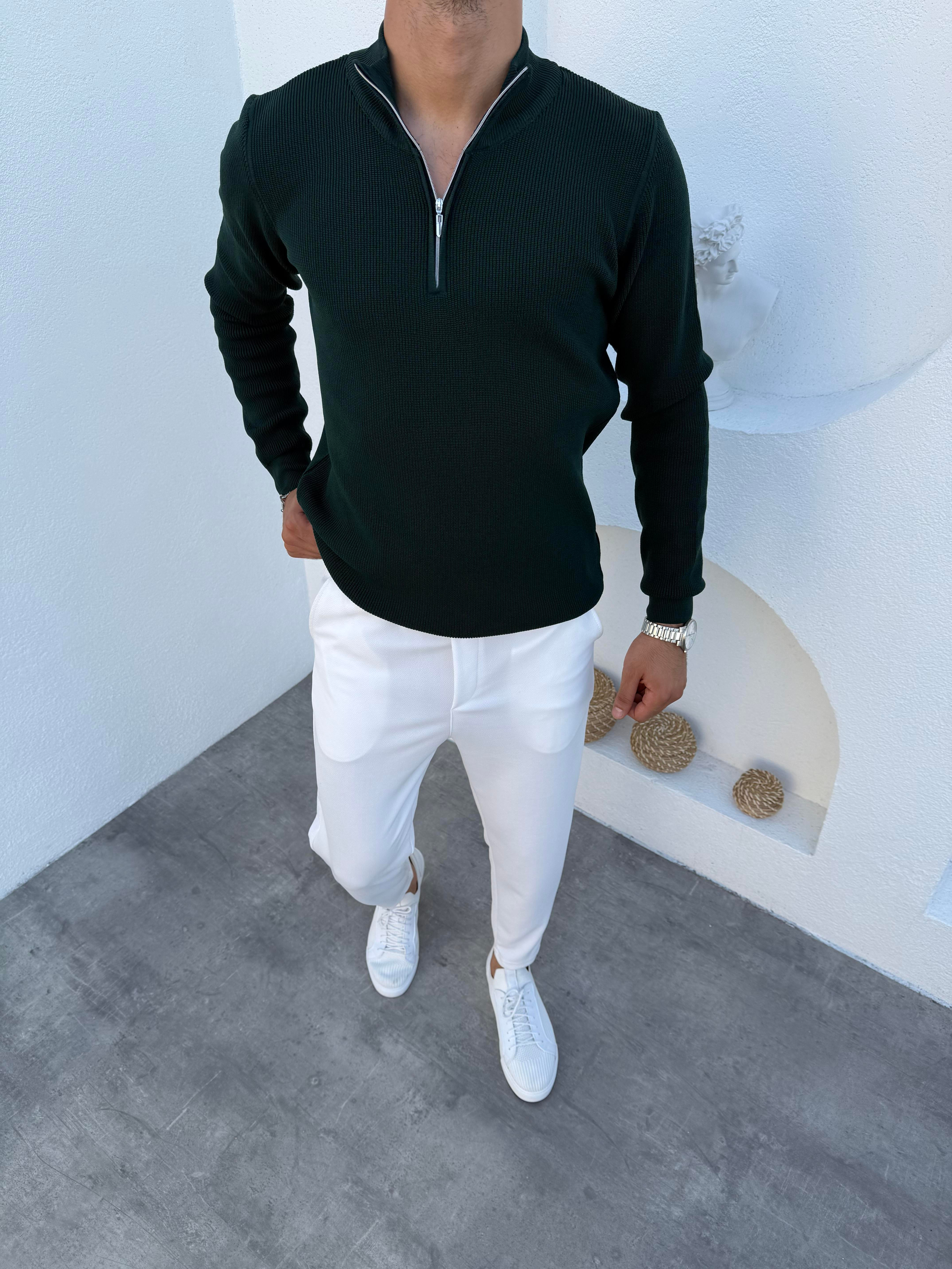 Yarım Fermuar Triko Kazak Yeşil (FM84622)